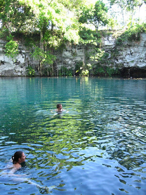 El primer lugar a visitar es El Dudu, luego de cruzar el río Boba, una cueva sumergida que forma dos pozos de agua turquesa.